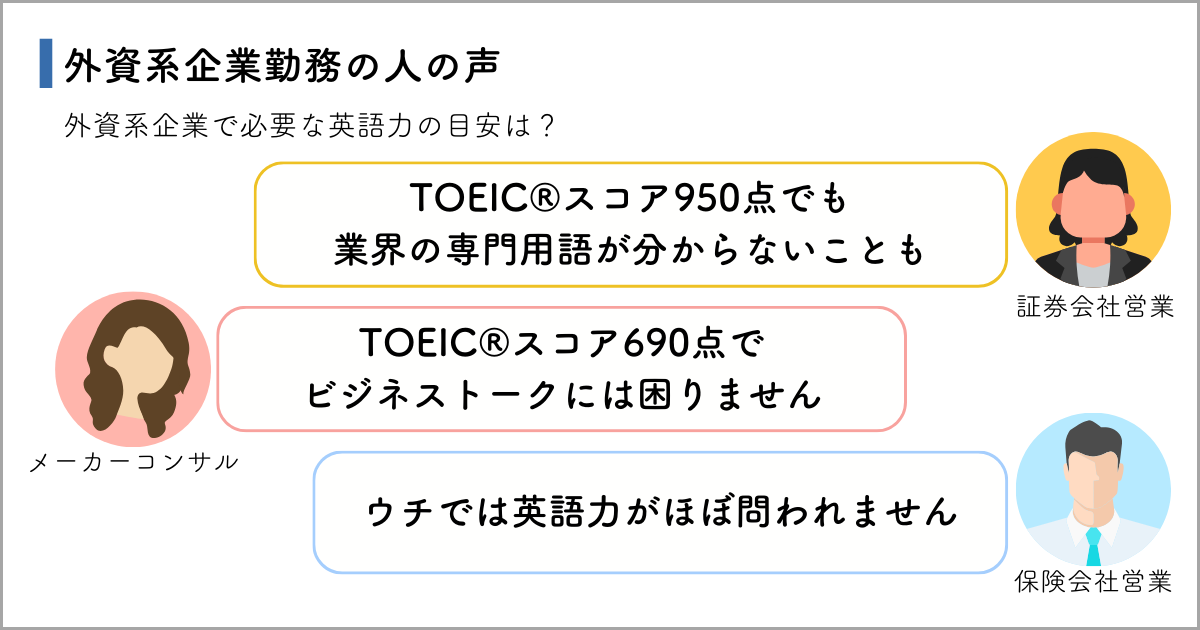 では、外資系企業で必要とされる英語力のレベルは具体的にどの程度でしょうか。